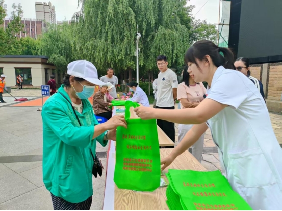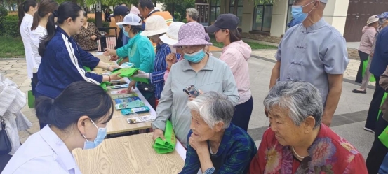 工作人员现场为居民发放健康科普宣传折页,普及合理饮食、规律作息、适量运动、心理健康等方面健康知识以及常见疾病的预防方法,引导大家养成良好的生活习惯,提高自我保健意识。