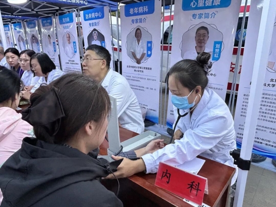 本次活动创新采用“摆摊问诊”形式,特邀北京内科、中医科、儿科等10余个学科的专家团队坐诊。活动现场分工明确、秩序井然,医疗专家与计生协工作人员形成服务合力,重点聚焦老年人、育龄妇女、儿童等群体需求。医疗团队免费提供血压血糖测量、健康咨询、常见病诊断及用药指导等服务;政策宣传区则通过设立咨询台、发放宣传折页、现场讲解等方式,围绕优生优育、生殖健康、育儿补贴政策等群众关切内容,开展一对一政策解读,让惠民政策听得懂、用得上。