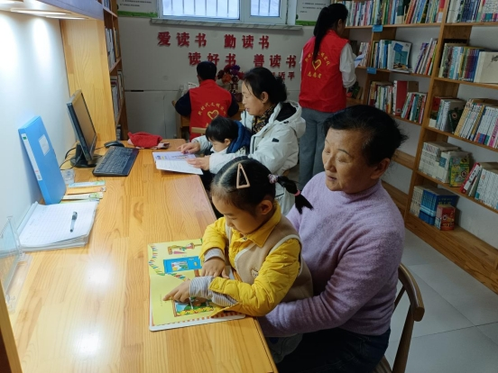 活动现场暖意融融,社区志愿者提前对草原书屋的图书进行分类整理,精心挑选出绘本故事、科普读物、红色经典等适合儿童阅读的书籍,整齐陈列在阅览区,为孩子们打造出一个温馨舒适的阅读空间。